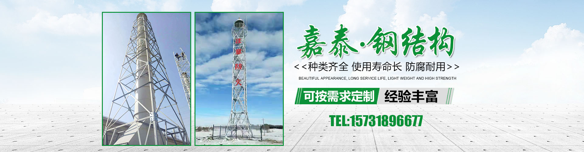 衡水嘉泰鋼結(jié)構(gòu)有限公司位于鐵塔制造之鄉(xiāng)-衡水市景縣廣川經(jīng)濟(jì)開發(fā)區(qū),石德、京九鐵路交匯處,距北京、天津、石家莊、濟(jì)南均在2小 時(shí)交通圈內(nèi),交通便利。公司主要產(chǎn)品有:避雷塔、監(jiān)控塔、瞭望塔、消防訓(xùn)練塔、電力架構(gòu)、樓頂工藝塔、廣播電視塔、煙囪塔、測(cè)風(fēng)塔 、電力塔、單管塔、雷達(dá)塔、仿生樹塔、氣象觀測(cè)塔、路燈桿,一體化基站、ETC龍門架等,是一家集設(shè)計(jì),生產(chǎn),運(yùn)輸,安裝,維護(hù)為一體的廠家。主要服務(wù)于鐵塔公司、通信三大運(yùn)營商、國防通訊,鐵路及森 ......